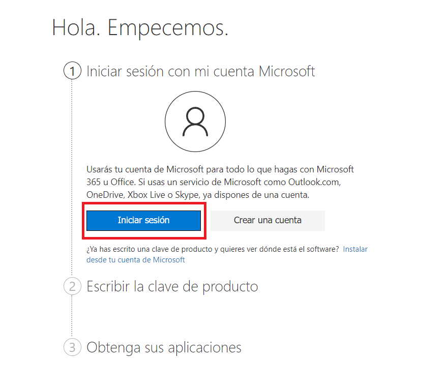 Para Canjear esta licencia necesitas tener una cuenta de Microsoft, si no la tienes la puedes crear en este mismo proceso.