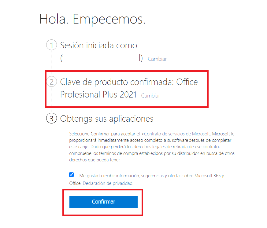 Una vez hayas iniciado la sesión confirma los acuerdos de la licencia y Office ya estará activado.