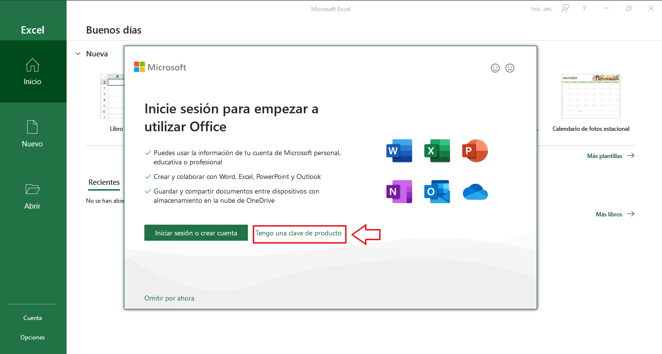 En el cuadro presiona la opción “Tengo una clave de producto”