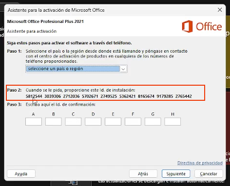 Este ID nos servirá para validar tu licencia de Office Professional Plus