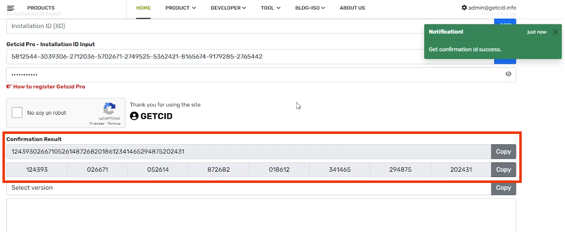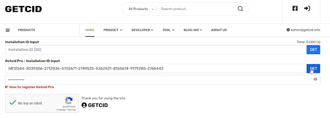 Ingrese a https://getcid.info/ y localice el area que dice “Getcid Pro - Installation ID Input“