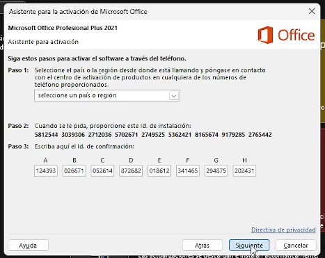 El sistema va a cargar los datos y en unos pocos segundos nos arrojará el código que debemos ingresar en nuestro Office, tal que así: