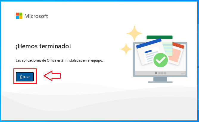 Espera a que termine y presiona Cerrar y procederemos a la activación de office.