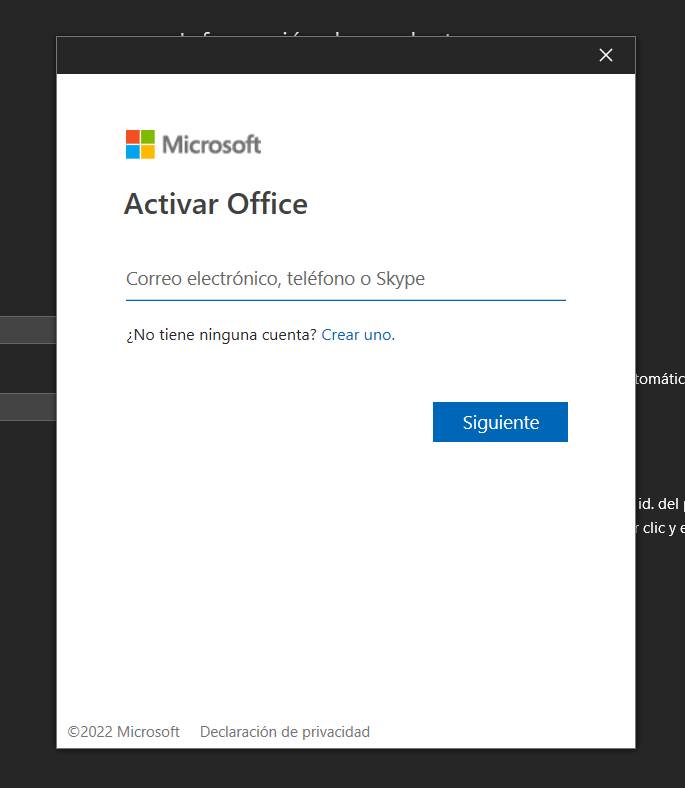 Para Canjear esta licencia necesitas tener una cuenta de Microsoft, si no la tienes la puedes crear en este mismo proceso.