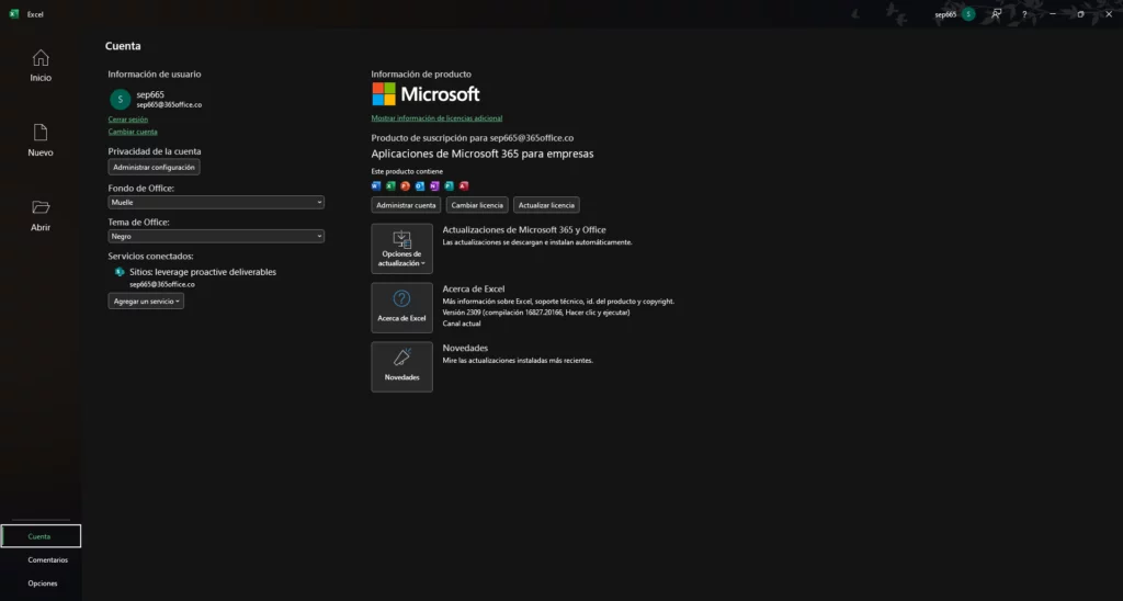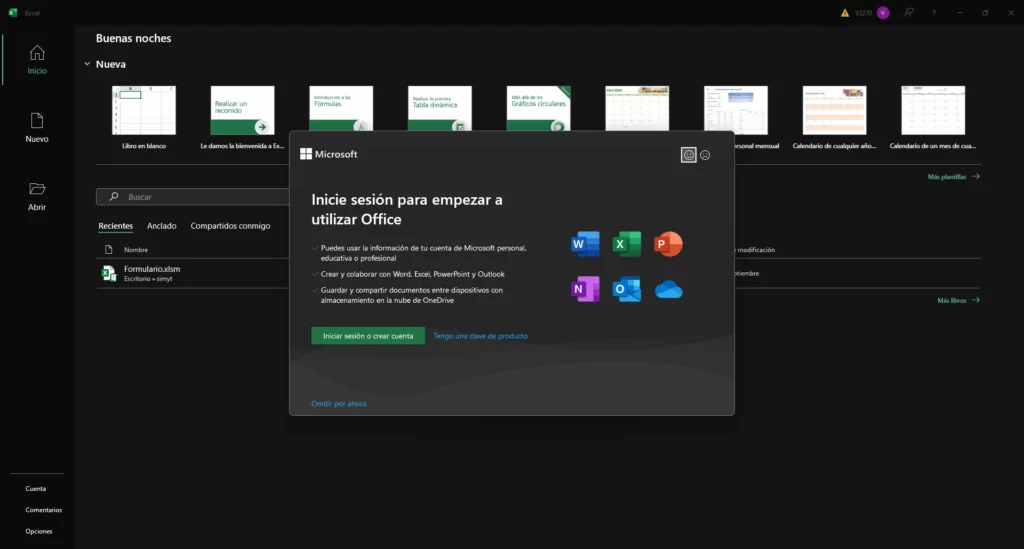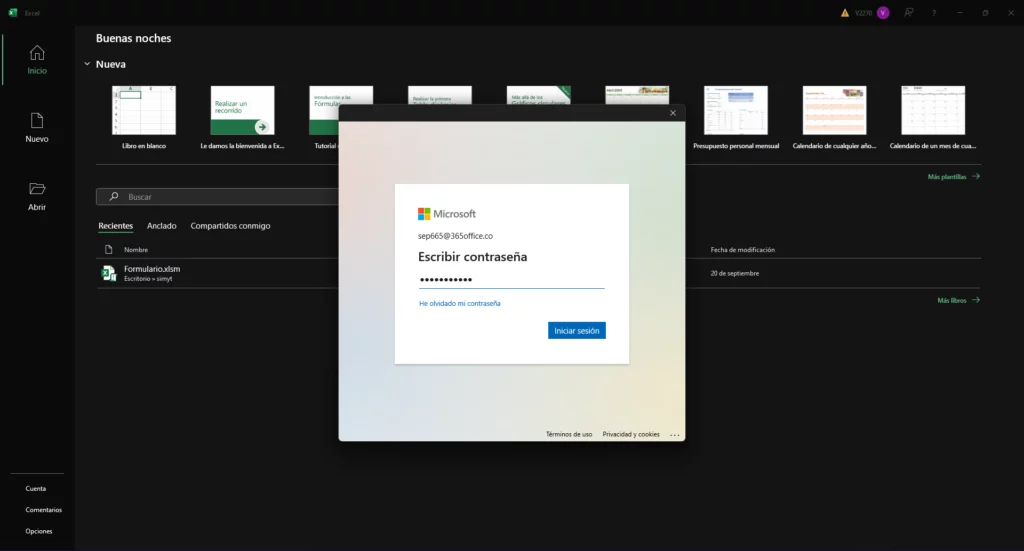 UNA VEZ FINALIZADA LA INSTALACIÓN: Debe abrir un programa de la Suite de Office 365, en este caso usaremos Excel. Debemos iniciar sesión con la cuenta que anteriormente activamos.