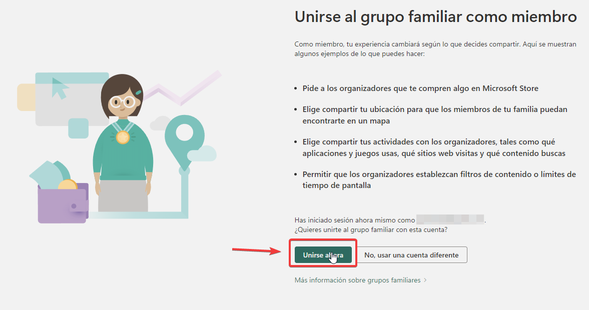 Al hacer clic será redirigido a Microsoft, debe hacer clic en "Unirse ahora".