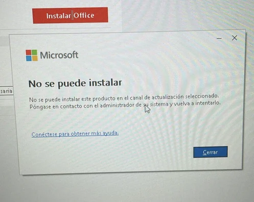 No se puede instalar este producto en el canal de actualización seleccionado