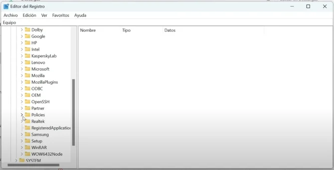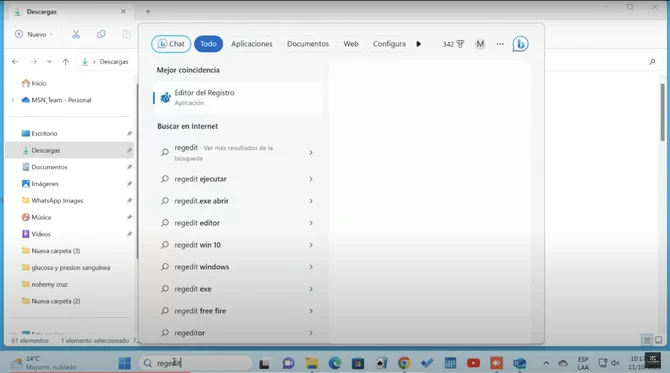 1. Ir al Editor de Registro: Debemos buscar 'Regedit' o 'Editor de registro' en la lupa de Windows
