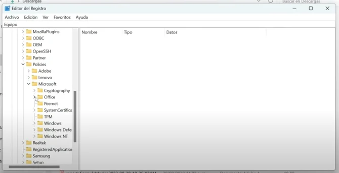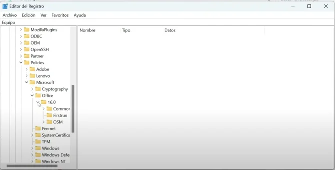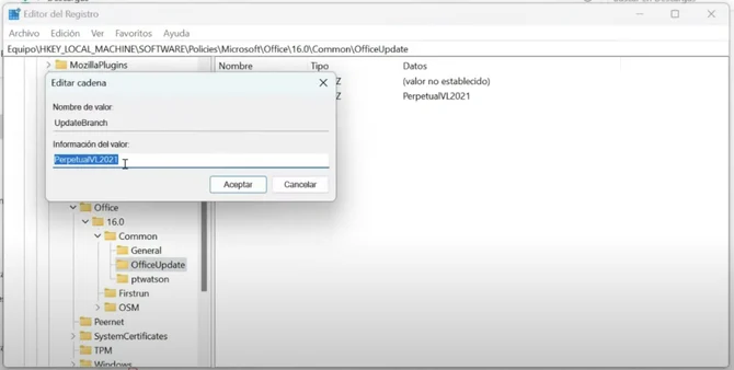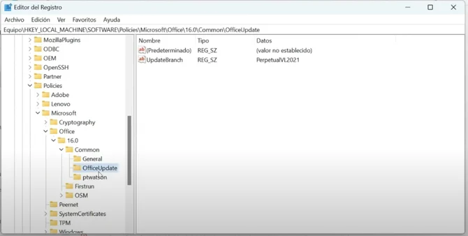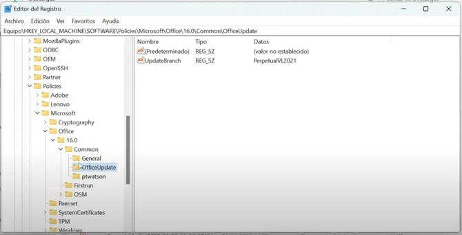 Luego presionamos la carpeta 'COMMON', y finalmente, hacemos clic en 'OFFICEUPDATE'